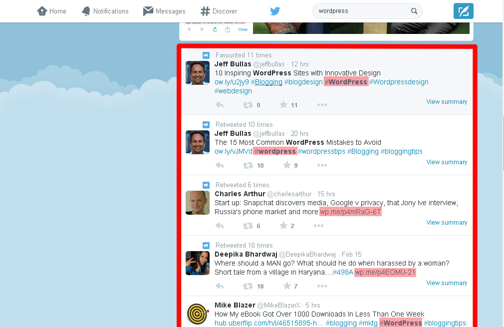 You will also notice in this image that many people who were actually not talking about WordPress like Deepika Bhardwaj are also featured in Twitter results along with many other irrelevant people because they have shared their blogs link which are like wp.me/etc-etc which means that they also own a WordPress blog.