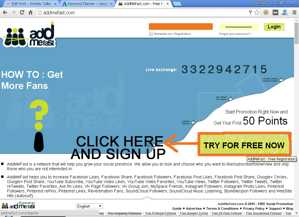 Visit AddmeFast and Sign up for their account.